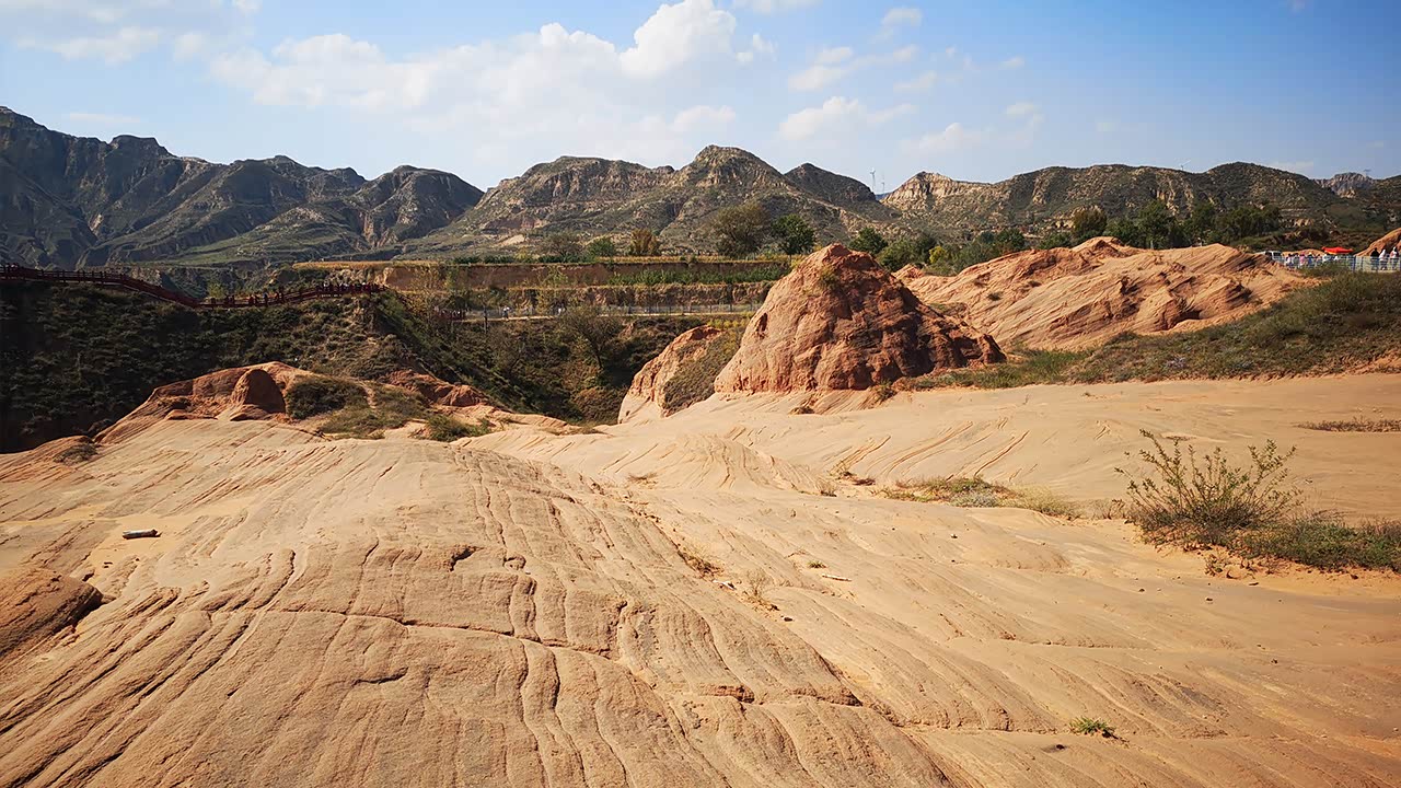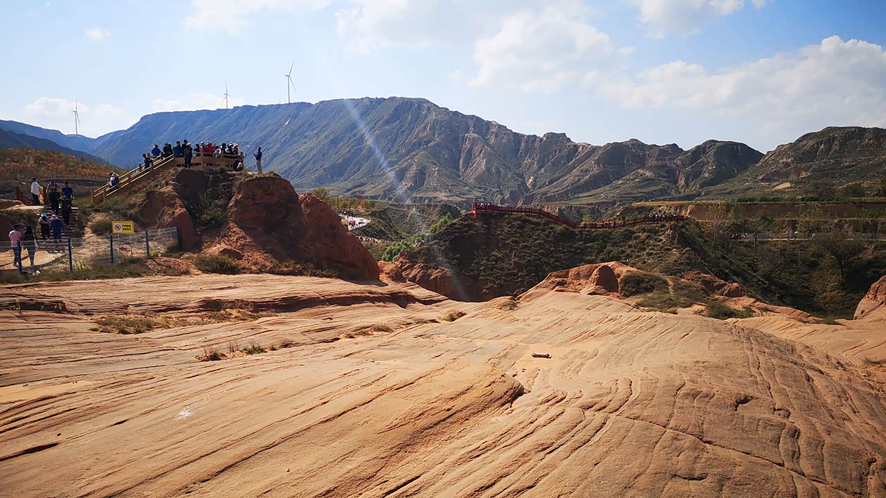我要路上被乡亲们拦下,估计没到景区就走不动了,因为从老乡家到景区门口路程至少有三公里。从景区入口走进去,就可以看到各种丹霞地貌,另外一个丹霞地貌的景点恐怕就得去 张掖 了,所以这里的北京 车很多。