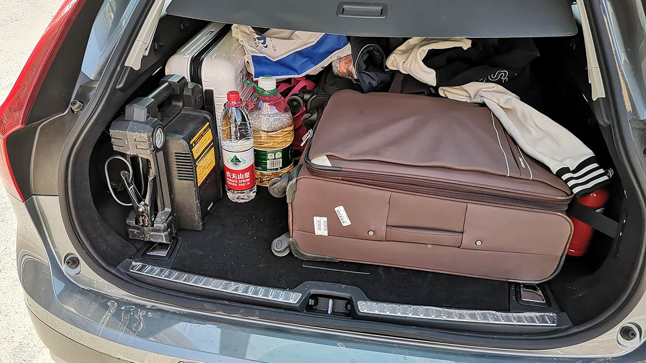 9月30日,出游第一天, 北京 — 榆林 。一起床就发现,今天 北京 的天气特别好,非常适合出游。往后备箱装东西的时候挺忐忑的,因为太多了怕后备箱装不下。怎么能收拾出这么多东西?我拿了一个登机箱,老婆和儿子一块拿一个托运箱,岳母自己也带了一个托运箱,除此之外还有两大袋吃的,我的应急启动电源,拖车绳,一大瓶自制玻璃水……