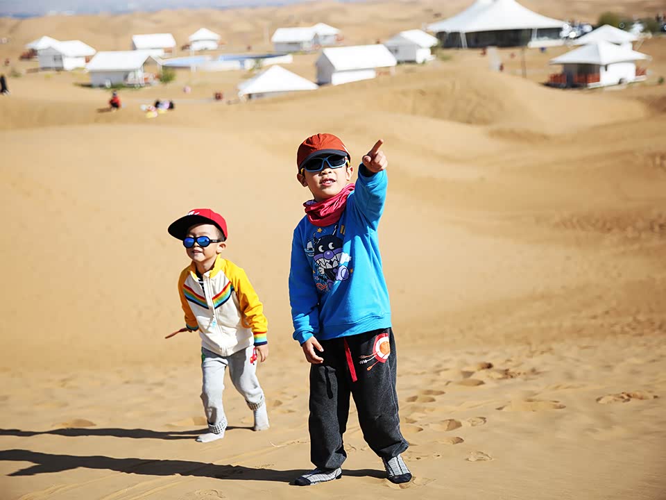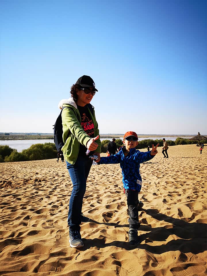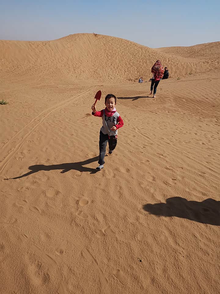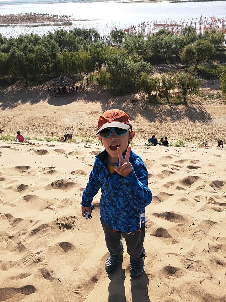 回来之后我带着儿子又坐了一趟沙漠冲浪车,儿子觉得没有前两天那个刺激。然后又带他滑沙,一边滑一边高兴,滑完说还想滑。从小就喜欢一切刺激的项目,但是也没见胆子大,到哪都怕黑。