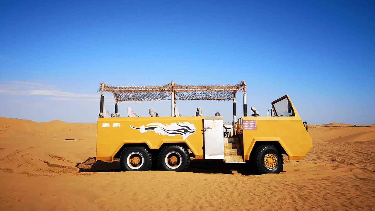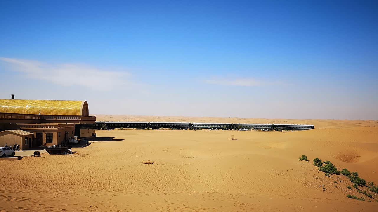 金沙海有一个绿皮火车旅馆,愿意的话可以住在那,大漠之中的一列绿皮火车,当然配备了空调等设备,不会真像坐火车的那种条件,应该是别有一番风味的。