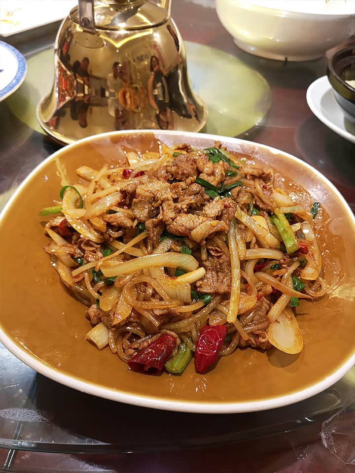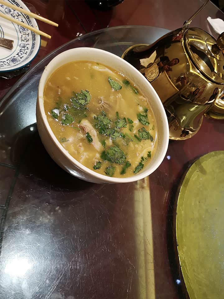 菜量不是那么大,味道吧,四个字形容——“入口即化”。真的特别香,一点膻味没有。就连不爱吃羊肉的人,都觉得很香,因为特别纯正。羊杂汤和炒羊肉片也很地道,总之,这里的肉确实不一样。