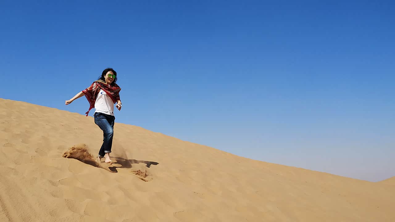 在沙子里跑,完全可以把鞋脱了,这里的沙子特别细,不会有碎屑更不会有石头,完全可以放心。穿袜子或穿鞋子进更没问题。