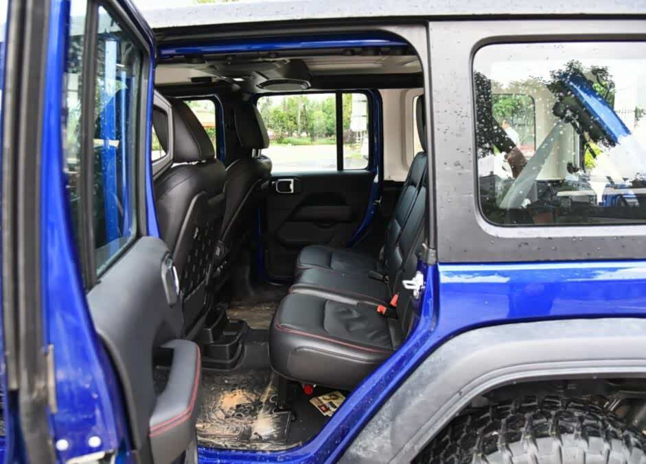 在过3m的大轴距之下,牧马人的后排空间自然不成什么问题,可以用宽敞来形容,而且再加上独特的车身构造,前后排的坐姿都比较高,坐进去的空间感还是非常明显。