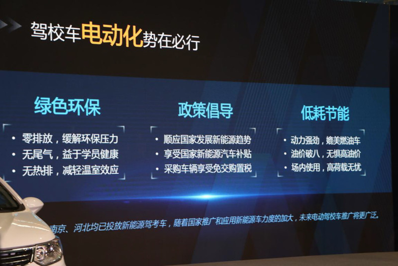 奇瑞eQ2顺应国家新能源发展趋势,享受国家新能源汽车补贴,并且还免交购置税和车船税;同时,随着油价上涨、维修保养等费用限制,导致驾校用车成本持续飙升;新能源车适合场地使用,电动机动力强劲,并且低速高负载无忧。