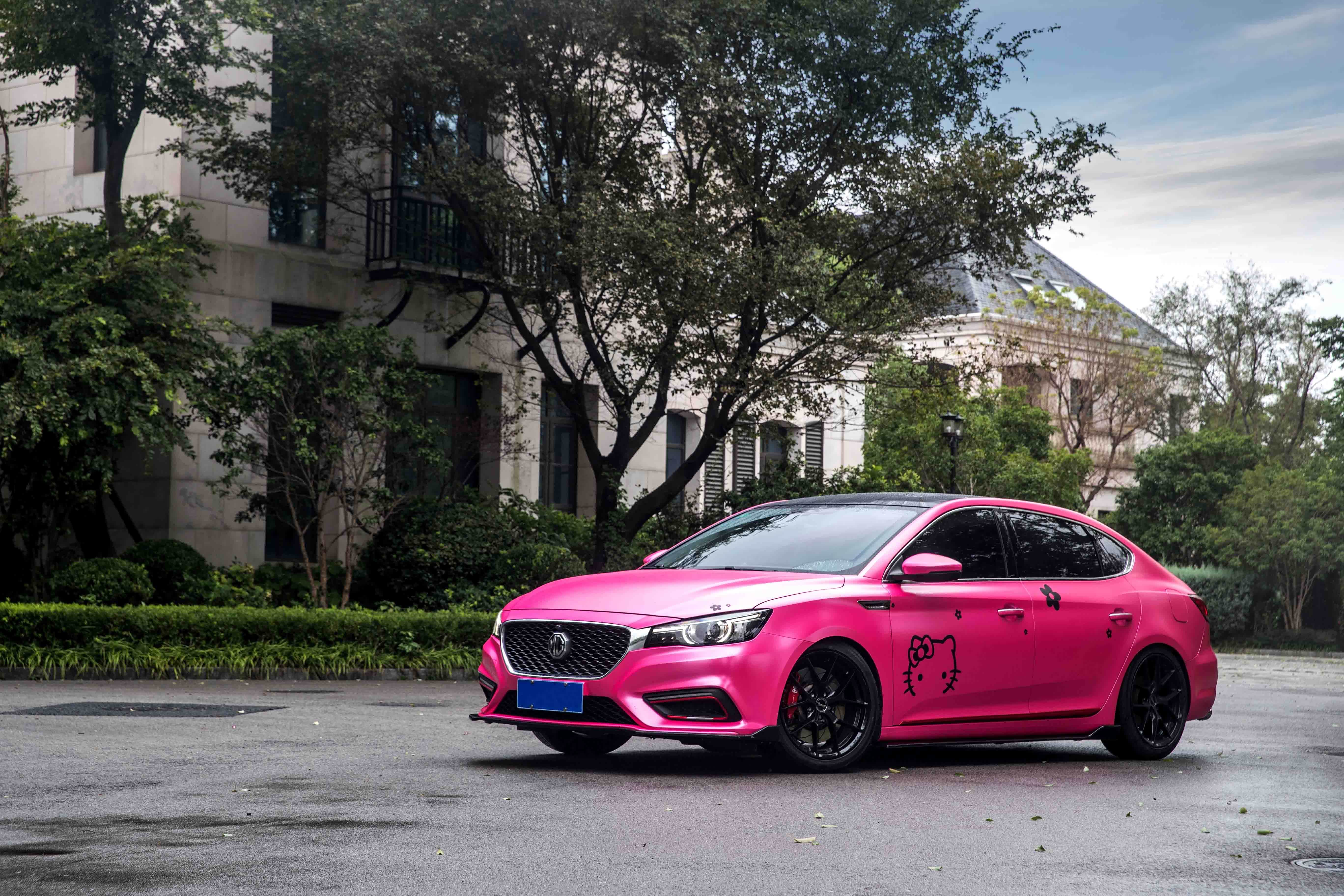 这台车最直观的改变便是更换了车身颜色,贴上了一层电光金属粉车衣之后,整车看上去十分个性,张扬的“骚粉”搭配溜背型车身,增添了不少回头率。大部分人都在纠结于更换车身颜色是否合法,小编可以明确的告诉大家,更换车身颜色是合法的,只需在变更颜色之后到车管所报备并更改车辆信息。所改颜色不超过车身总面积的30%,并且所改的颜色没有超过3种以上,可以不用变更行驶证,就比如在“小粉”上加了个hello kitty。