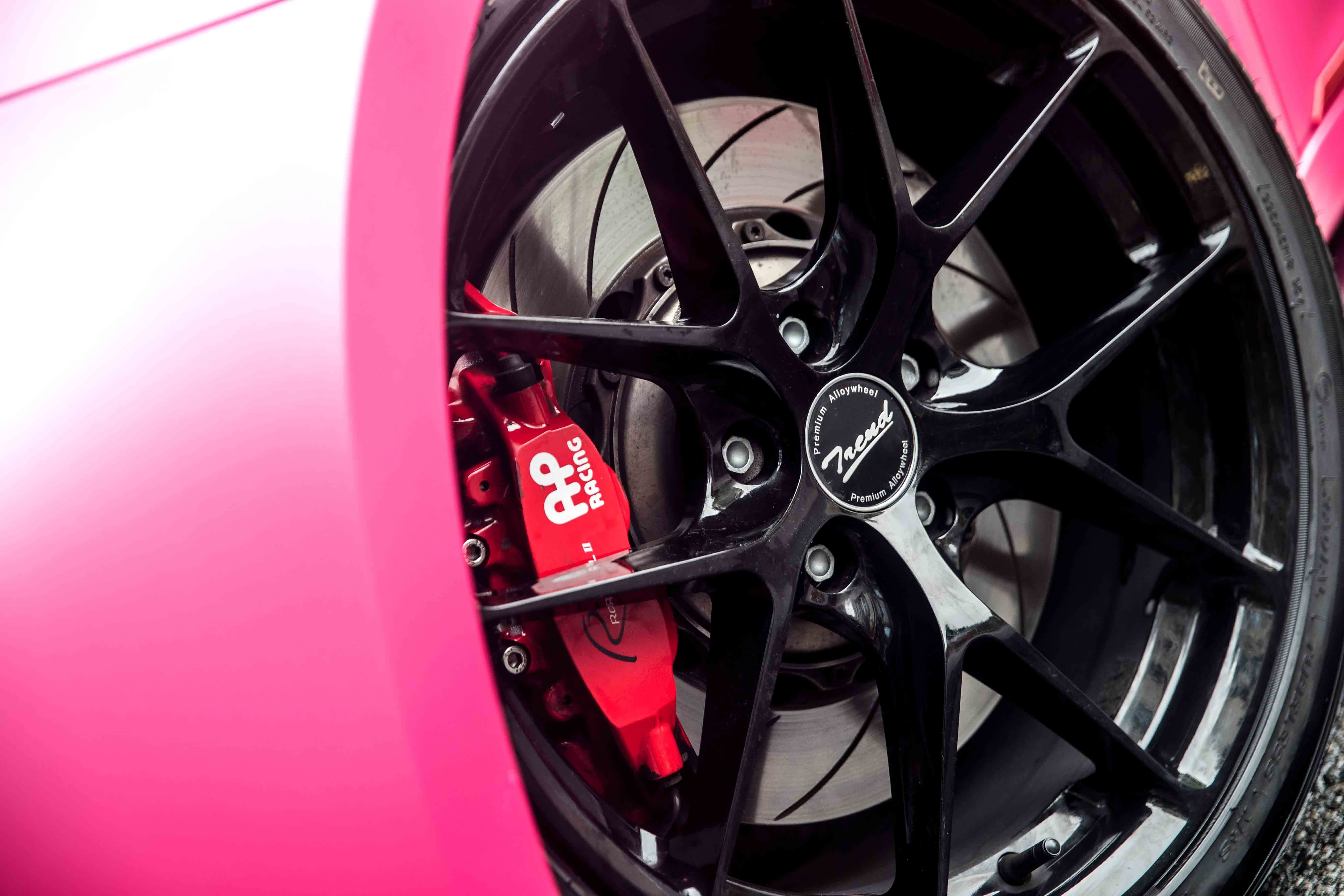 外观的改装讲究的是颜色搭配,一眼看上去舒服不扎眼便达到了目的,粉色的车身当然要用黑色搭配。车主选择了黑色多幅式雅泛迪TREND系列铸造轮毂,在不更改原车轮毂尺寸的情况下,改变轮毂样式从法律上讲也是合法的。
