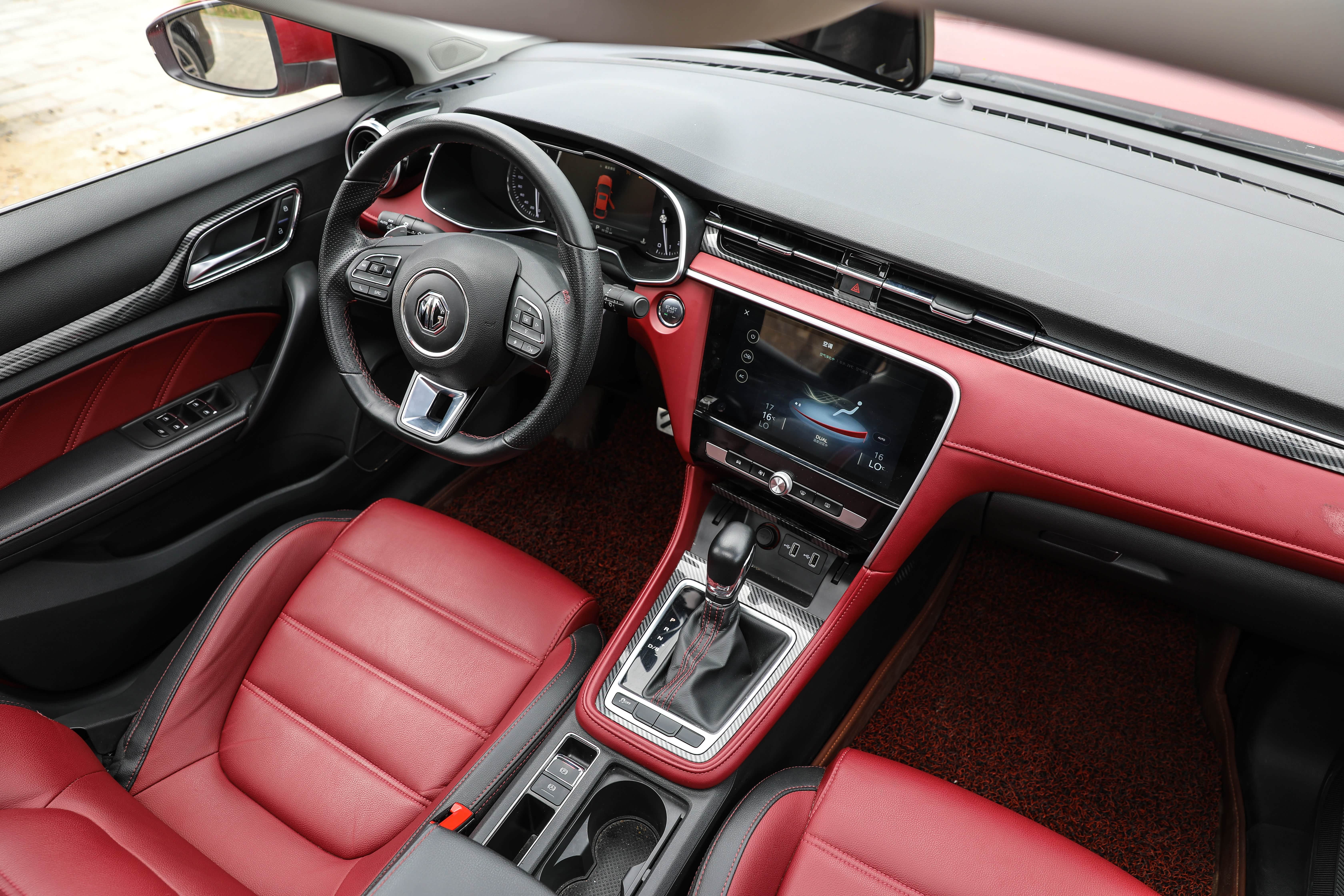 内饰方面,名爵6原车采用了象征着运动的黑红相间内饰,碳纤维饰板的加入也为车内营造了不少氛围。