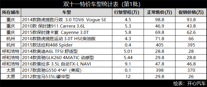 话不多说,我先来晒一晒双十一第1 批打折优惠的车型,如下: