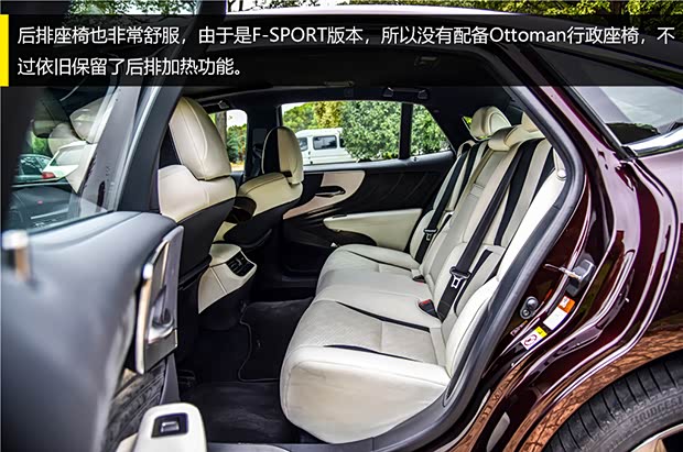 后排座椅也非常舒服,由于是F-SPORT版本,所以没有配备Ottoman行政座椅,不过依旧保留了后排加热功能。