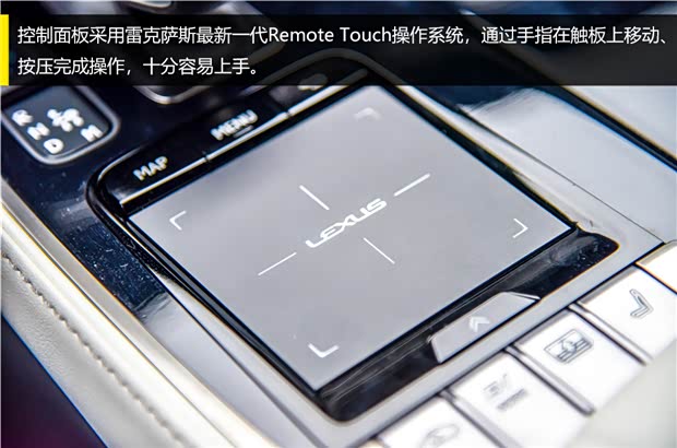 控制面板采用雷克萨斯最新一代Remote Touch操作系统,通过手指在触板上移动、按压完成操作,十分容易上手。