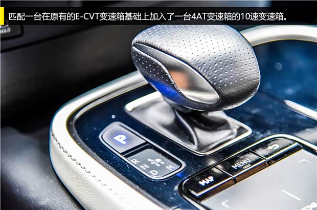 匹配一台在原有的E-CVT变速箱基础上加入了一台4AT变速箱的10速变速箱。