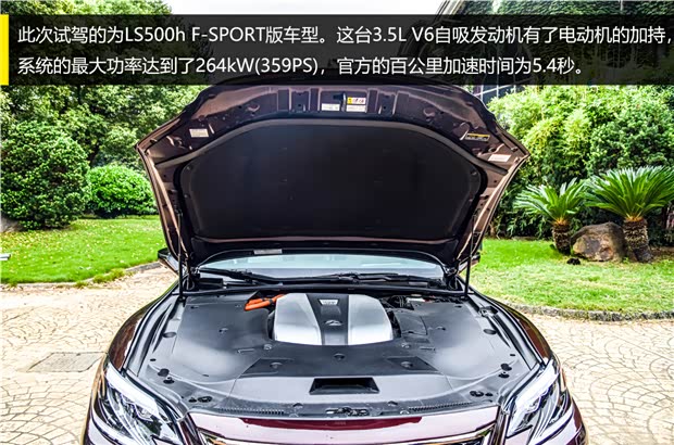 动力方面,目前全新LS在国内只提供两套动力系统,即3.5L V6自然吸气发动机+10AT变速箱(LS350)和3.5L混动系统+10速变速箱(LS500h),此次试驾的为LS500h F-SPORT版车型。这台3.5L V6自吸发动机有了电动机的加持,系统的最大功率达到了264kW(359PS),官方的百公里加速时间为5.4秒。