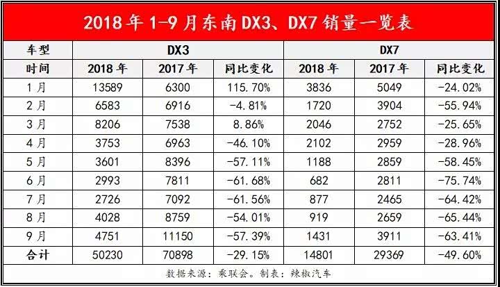 辣椒汽车·车市观察:虽然车市低迷令很多车型的日子都不好过,有的甚至出现暴跌,但东南汽车的两款SUV DX7和DX3连续五个月都出现销量腰斩,却并不多见。