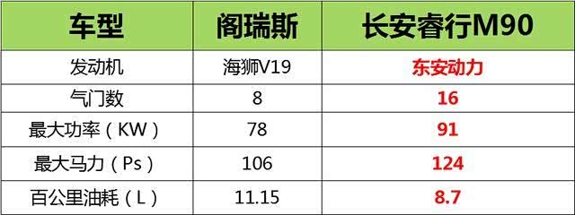 长安睿行M90采用了东安动力三菱技术,16气门的动力设计带来强劲动力,搭配德国·格特拉克变速箱,车辆最大功率91kw,最大马力124Ps,百公里油耗却仅有8.7L;阁瑞斯新快运发动机采用老款海狮的V19发动机,侧置凸轮轴、8气门动力设计,由于发动机技术滞后,导致输出功率较低,其能达到的最大功率为78KW,最大马力为106Ps,油耗也较高,百公里消耗高达11.15L。按照每日跑220KM,一年下来,长安睿行M90油耗比阁瑞斯节省至少万元。无论是动力表现还是油耗,长安睿行M90均有突出的优势。