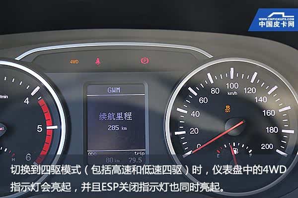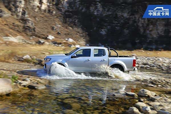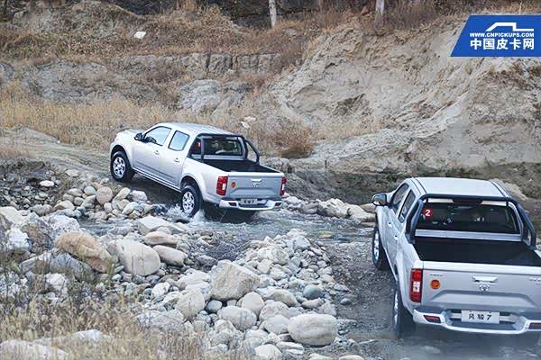 对于一款皮卡来说,其实最应该试试四驱模式了。试驾当天去到的非铺装路面是一个河道,中间有一些水流,整体难度不大,虽然用了高速四驱模式,实际用两驱(后驱)模式也应该能正常通过,高速四驱只是保证肯定能通过,低速四驱更是用不到了。值得注意的是,将驱动模式旋钮切换到四驱模式时,仪表盘中会亮起4WD的指示灯,同时ESP关闭的指示灯也会亮起,只不过ESP是否能完全关闭不得而知。如果想要驾驶风骏7去穿越沙漠或者更难的路况,还是建议在四驱模式时将ESP完全拔掉,保证动力能够持续输出。