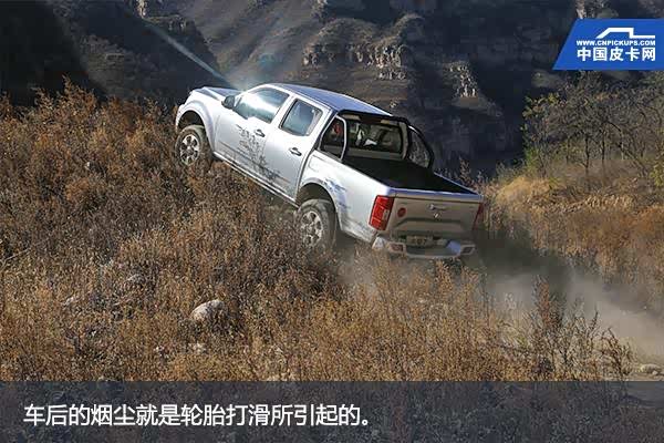 动力够不够用,爬坡很能体现,只不过当天的试驾场地有限,小编找了半天才找到一个坡度不小的驼峰。风骏7在坡底开始起步,不用大脚轰油门就可以轻松的爬上这个小驼峰,只不过由于235/70R16的好运轮胎是一款偏向公路的轮胎,在碎石路面抓地性能下降,坡道中稍微打滑了几下,不过并不影响结果。
