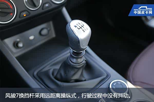 另外提升行驶质感非常非常重要的一点就是换挡杆。在一般的手动柴油车上,点火的时候会首先带来挡把的一顿乱晃;在驾驶过程中如果你摆出一副右手扶在挡把上这种老司机的姿态,那么你的右手就会像坐在按摩座椅上一样感受到不停的震动。而风骏7的挡把完全没有这种感觉,扶着非常像是汽油家用车,一点抖动都没有,这样就让车内的档次感大大提升。这是由于风骏7的手动变速器不再采用直接操纵式,而选用了节省空间、抖动小的远距离操纵式。优秀的隔音降噪水平和远操式变速器,让风骏7开起来有了与一般的工具型皮卡不一样的感受,一下子就提升了整车的档次感,大家有机会一定要去亲自试一试。