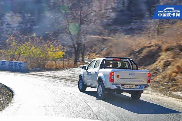 风骏7采用前双叉臂扭杆弹簧独立悬架,后钢板弹簧整体桥非独立悬架。在铺装路面上行驶非常稳定,路过细碎的颠簸和起伏路段没有多余的弹跳,高速过弯支撑性也很足,没有出现较大的侧倾。只不过在过较大的颠簸时,空载的货箱还是会让车内乘客感受到来自后部突兀的支撑力。而在非铺装路面行驶时,支撑性则是舒适性的对手,慢速通过颠簸路段会让乘客感到不安,所以遇到砂石路土路的路况时,不要速度过慢,保持一定的高速行驶,充分的让悬架拉伸和压缩,车身则能由于惯性保持平稳,舒适度会好一些。
