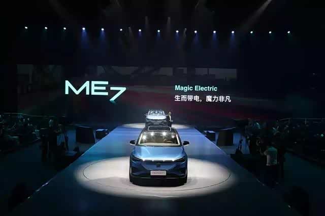 型面设计理念能明显提升整车造型的视觉力量感。ME7有70%的外表面积采用了型面设计造型,其余30%保持了线条勾勒设计。这一优美比例对车辆每个型面上光与影的能量进行了有效控制,扩充了整车轮廓外延和力量感。大量曲面应用减少了车身的割裂感,进一步增强了流畅、动感的整体视觉效果。全车外观显得干净、大气。