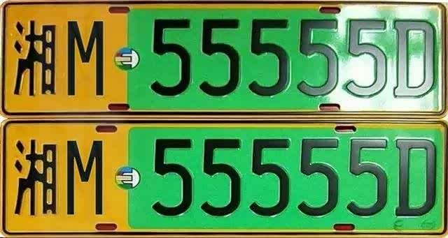 3.绿底黑字黑框线:新能源汽车专用号牌,新能源汽车号牌为渐变绿色。