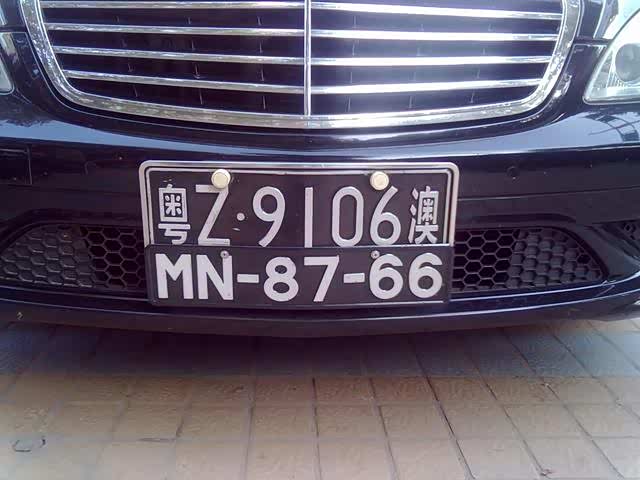 5.港澳入出境车号牌:黑底白字,白“港”、“澳”字,白框线。港澳地区入出内地的汽车。