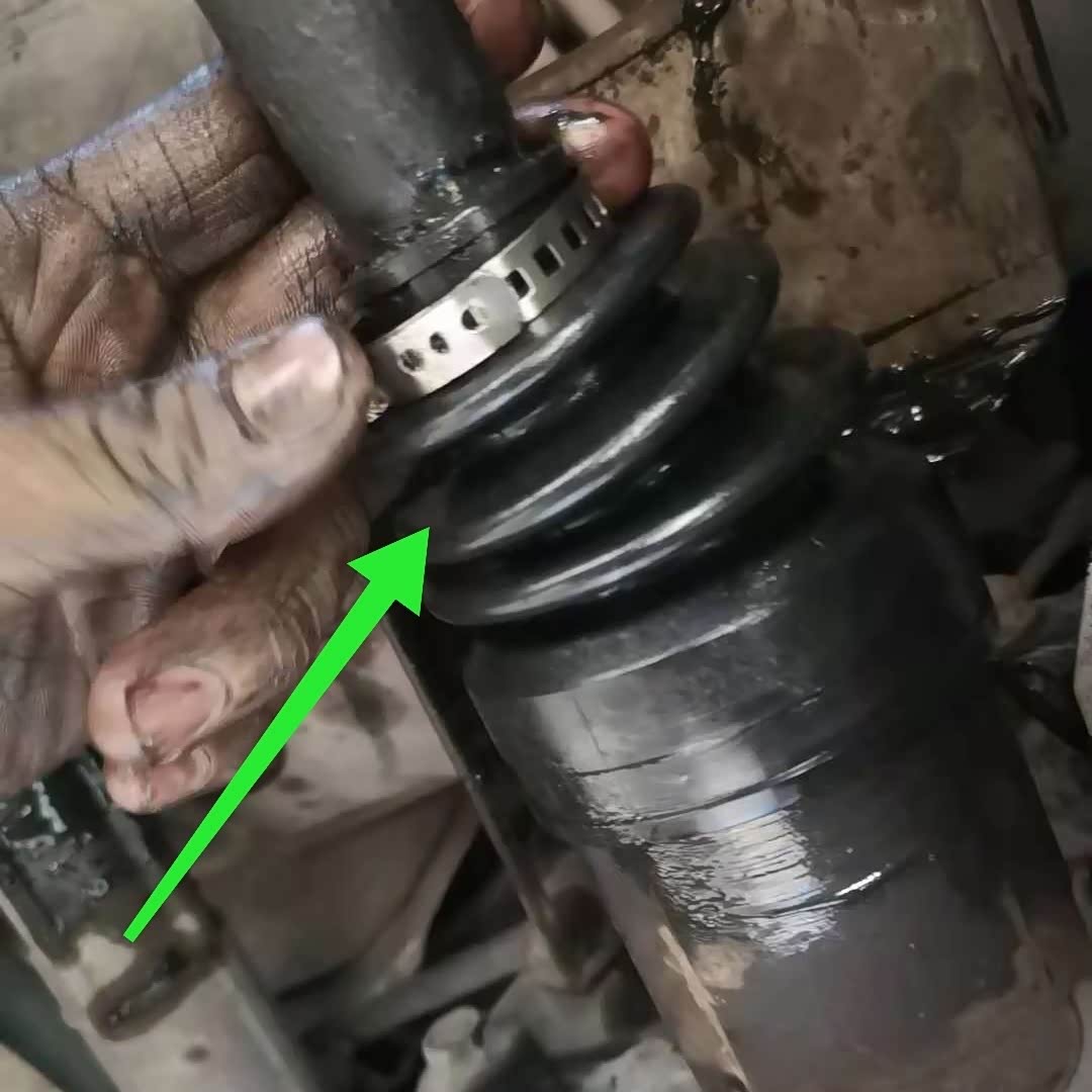 下图所示,师傅已经把新内球笼套给安装好了。这个维修就比较容易,师傅唯一感到不爽的是黑色的球笼油沾满了手,如图中所示。