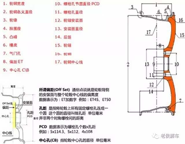 汽车轮圈的主要参数有:车轮尺寸、PCD、偏距ET、中心孔