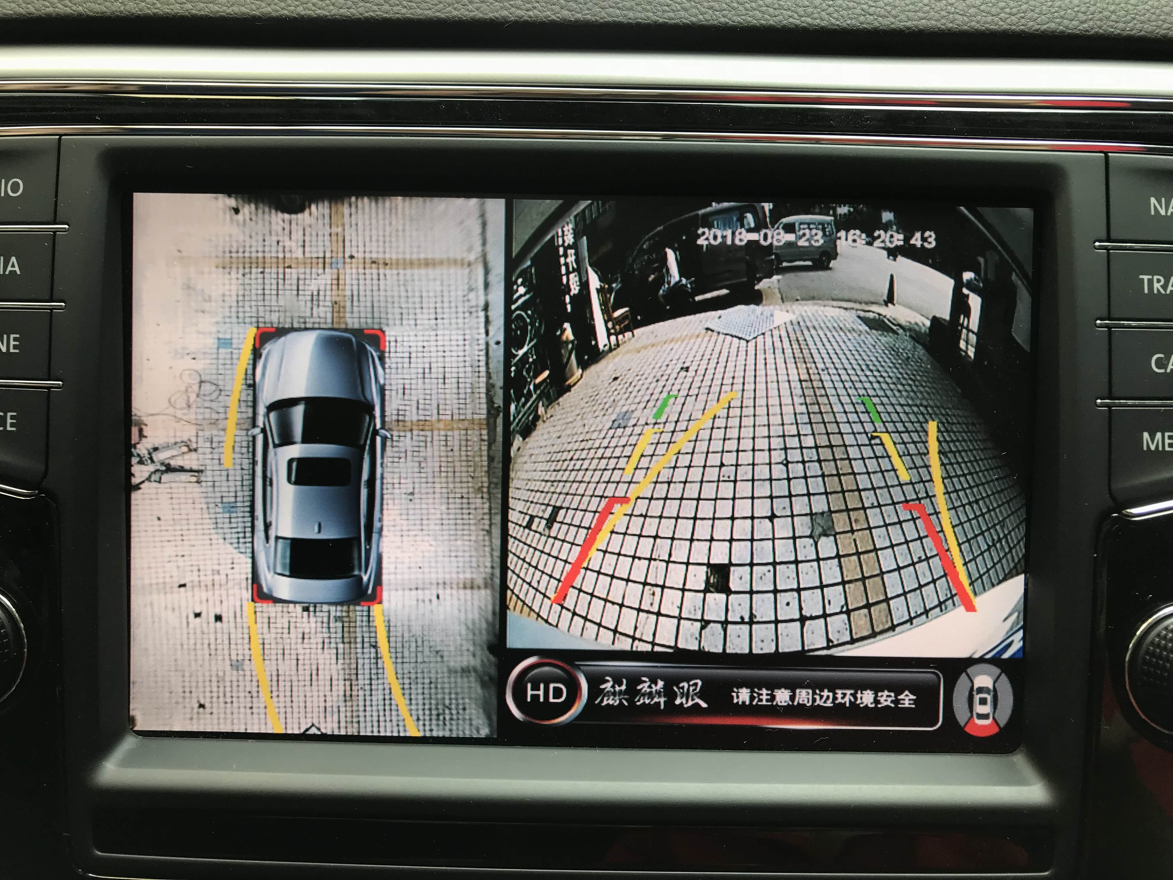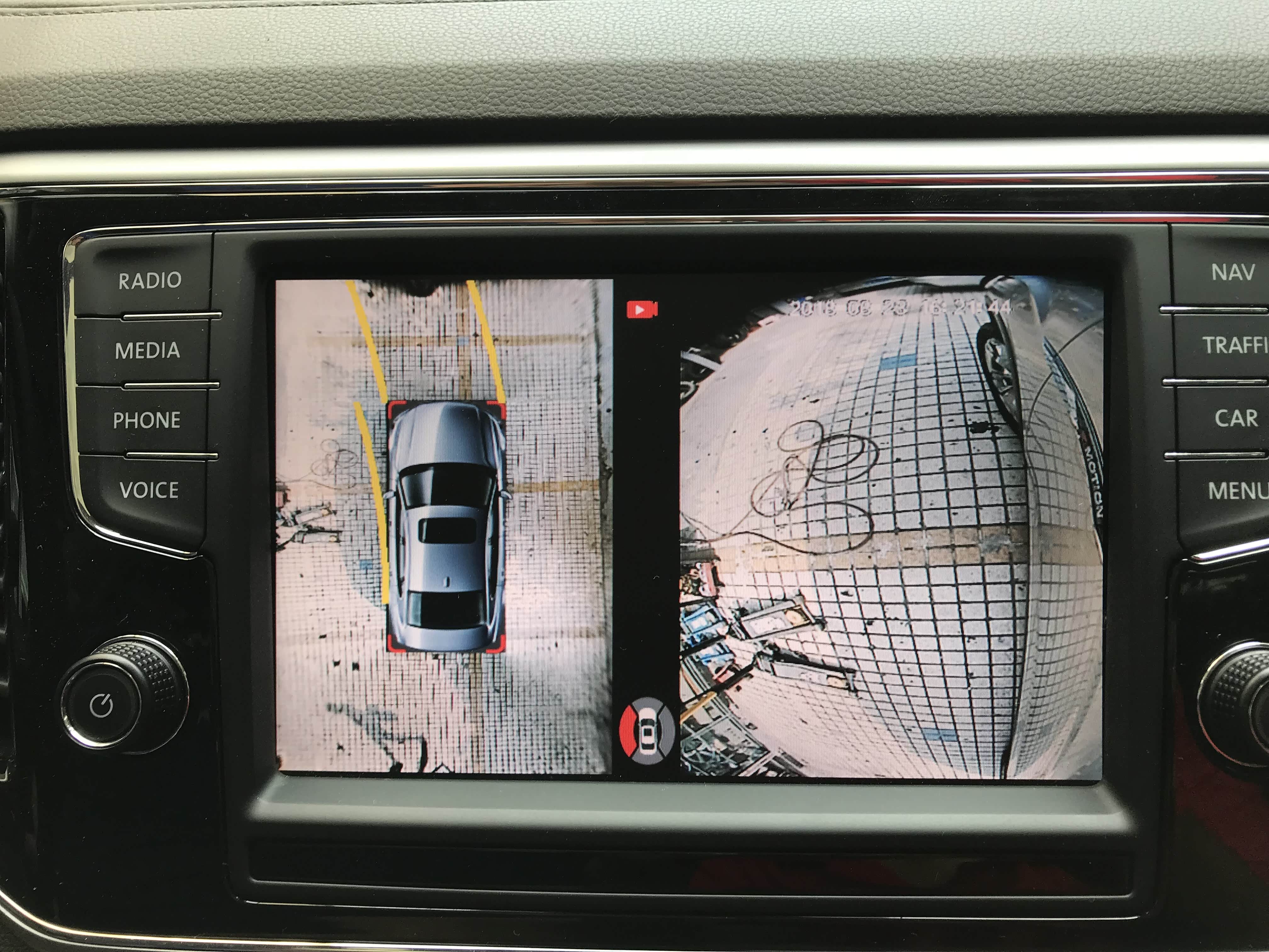 全景拼接完成,这张图就充分展示了360全景的作用了,左方全景画面行车无盲区,车子周围实时路况尽收眼底。右方前视画面,实时记录,车头盲区画面尽在眼底。
