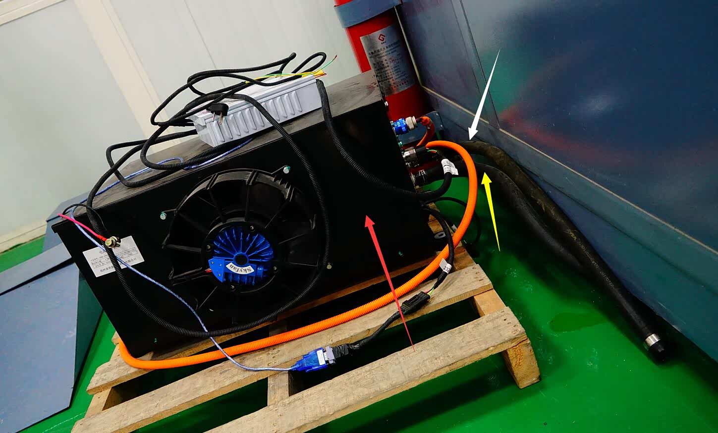 黄色箭头:冷却液至动力电池输入端口