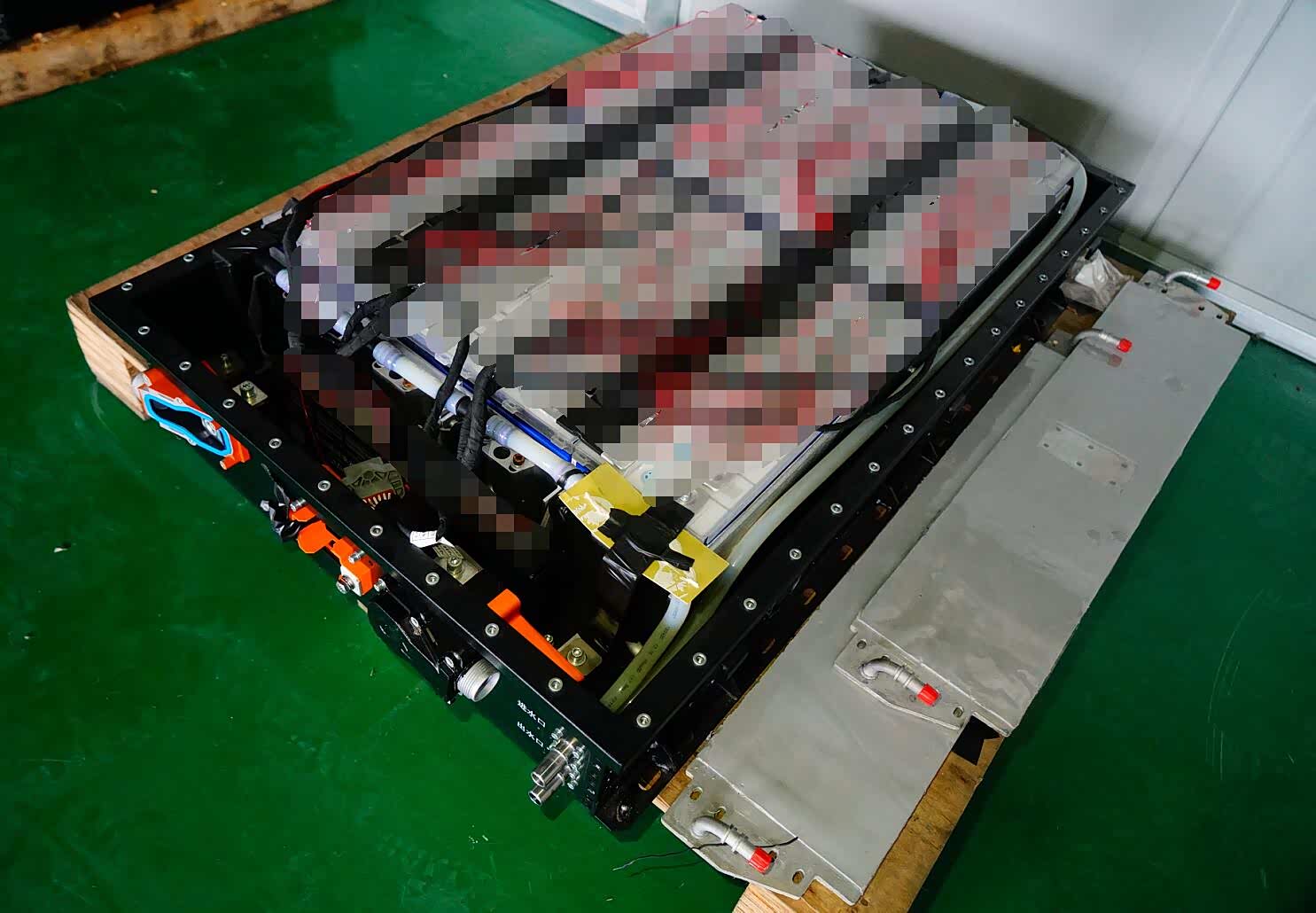 在开沃汽车中央研究院实验室内,笔者发现了一组处于测试状态的2代动力电池总成和热管理系统。