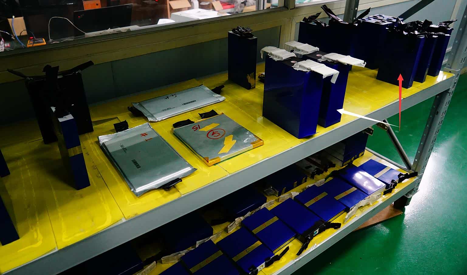 红色箭头:待检测的方包105Ah磷酸铁锂电芯