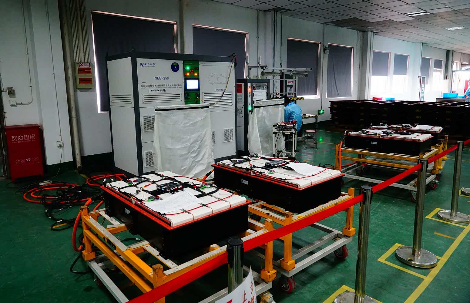 上图为创源电池生产线的电池总成容量检测台。