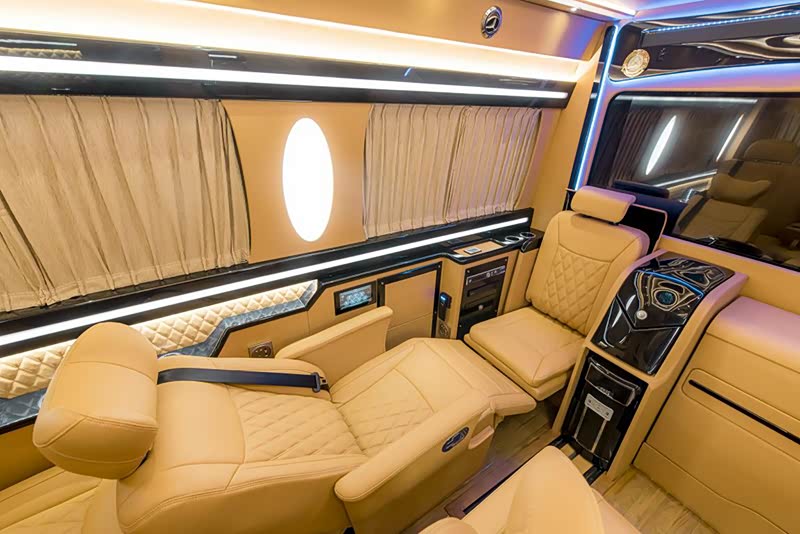 车家号·0浏览·2019-01-03 12:00 · 广东这辆奔驰斯宾特其实是一台公司新添的商务接待车,新买来没多久就送去上海车之宝的改装工厂做了全套的内饰升级改装!改装项目包括座椅改装,加装木地板,汽车内的顶灯改装,加装驾驶室与后排的隔断,加装吧台等等,改装成房车的斯宾特变身超豪华商务座驾!