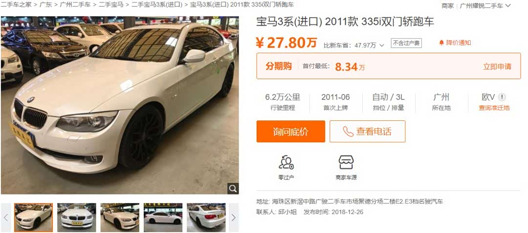 人已老但心不老,如果还想像以前那样享受驾驶乐趣,现在要花多少钱才能买到一台335i?综合行驶里程、生产年份、车况以及上牌日期等因素,一台335i的价格在22万-27万不等,这其实也是现在一台320iM运动曜夜版的价钱了。