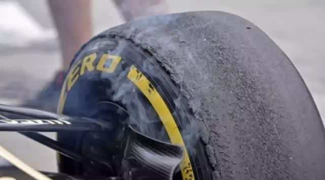 F1比赛使用轮胎为热熔胎,磨损极快;