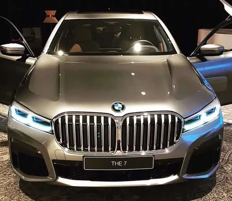 这台则是豪华套装版的宝马7系中期改款,前脸最大的特点就是下方的包围造型是和宝马在2014年发布的Vision Future Luxury Concept概念车神似,激光大灯的样式也有所改变,和新款G20 3系相似。