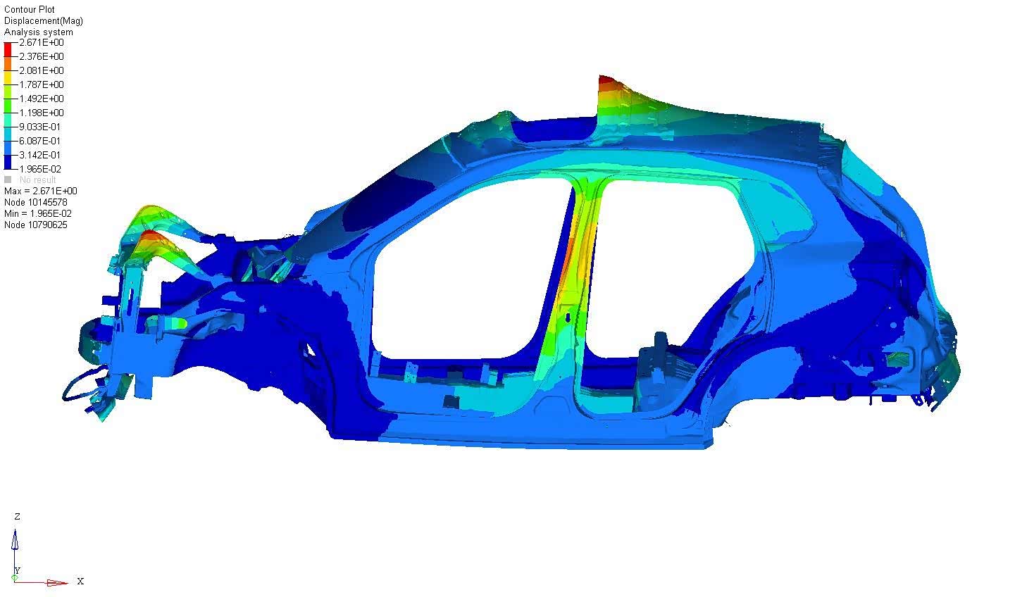 而在这方面,在设计之初,绅宝智行采用车身结构CAE仿真优化分析,对车身结构进行优化设计,使得整备车身结构模态提升至30Hz,车身大钣金模态提升至70Hz以上,进行合理避频设计,有效避免车辆在各工况下的共振轰鸣。