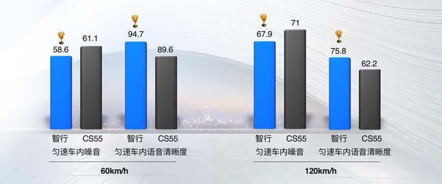 例如在高速公路上行驶的时候,能够测试的绅宝智行车内噪音在40公里/小时和90公里/小时相差不多,只有4分贝左右的浮动,其中绅宝智行60km/h匀速噪声的指标仅为58分贝,优于同级车60分贝以上的标准,匀速车内噪声较CS55低2~3.5dB,相当于C-ECAP银牌水平。
