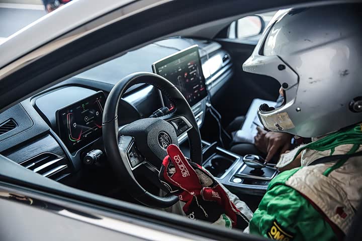 随着第一个弯道的到来,收油、全力踩下刹车,打方向,出弯继续给油,车身再次迸射出去。简单的一个弯道,纯电动车和燃油车在赛道上的感受确实完全不一样,在入弯前的制动中,由于不像燃油车可以降挡配合减速,因此需要早刹车入弯,而出弯时,纯电动车的提速能力又比燃油车强上一些。