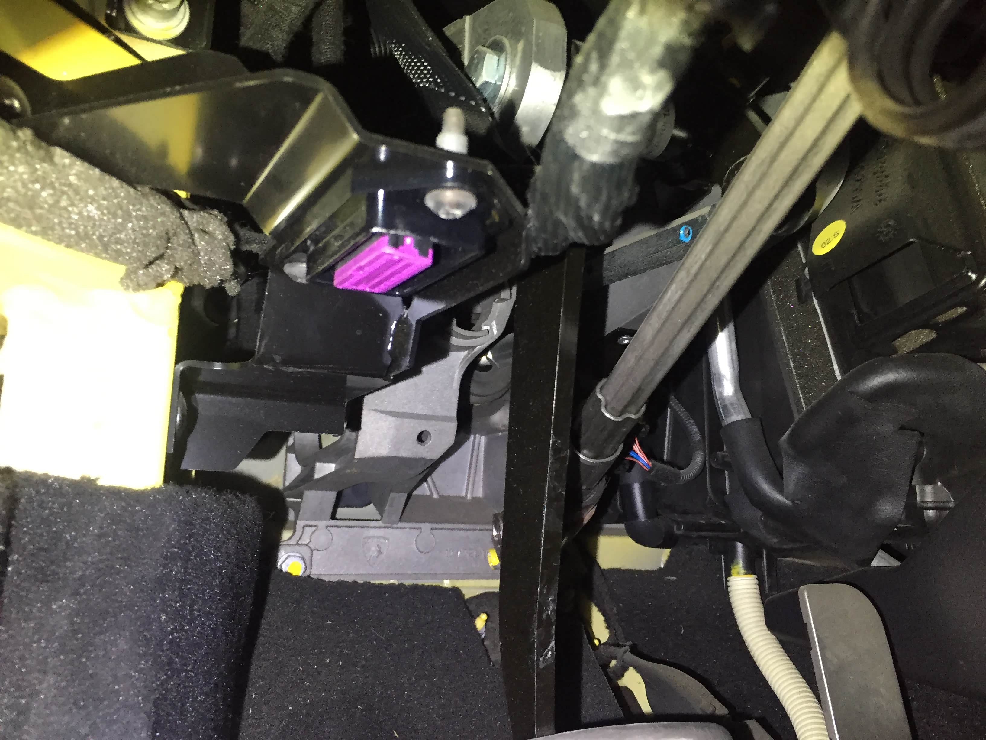 检测驾驶座底部脚踏板、转向柱、地毯、线束未见有泥沙、异常生锈迹象