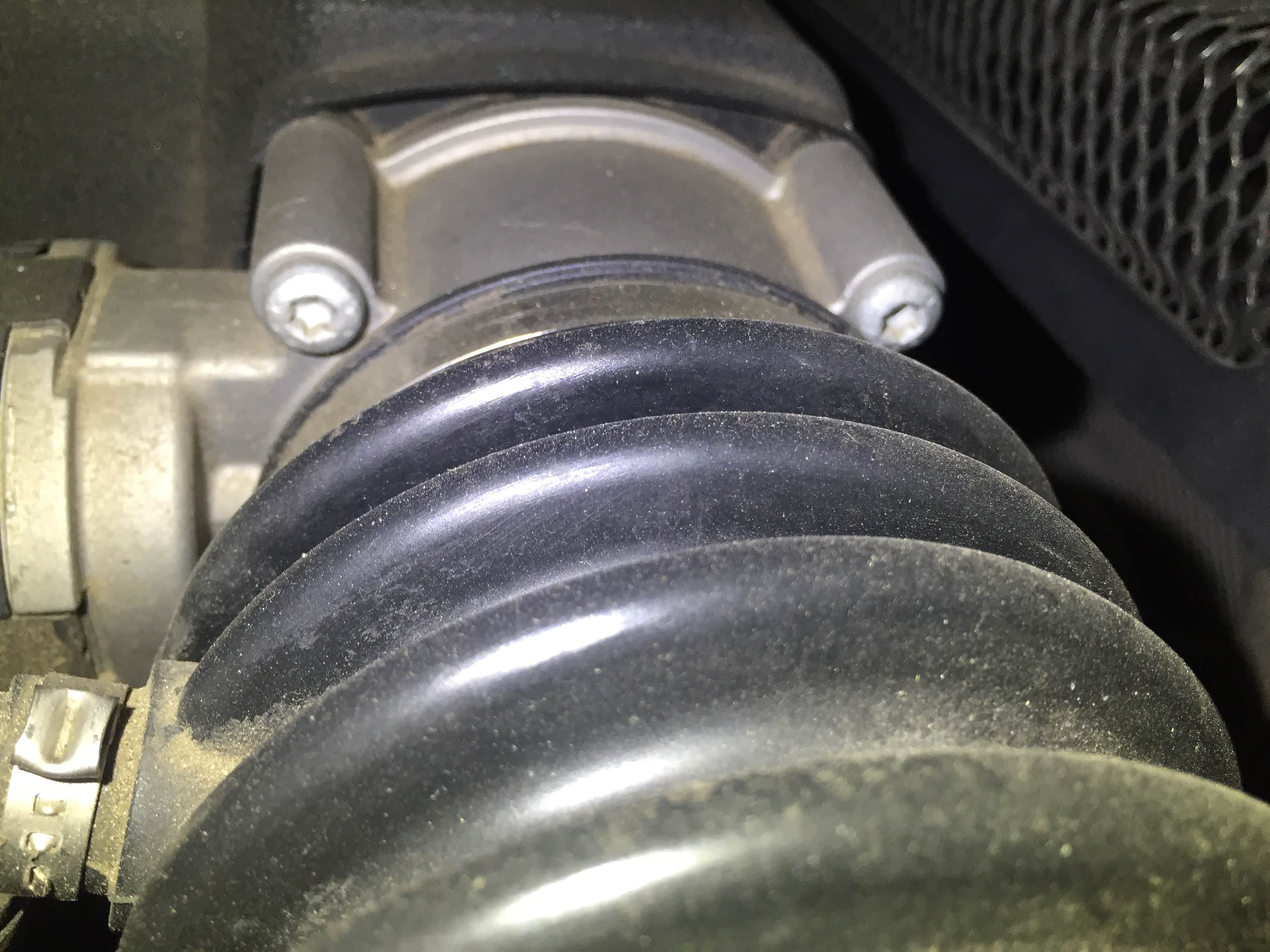 发动机进气管道较新及有管夹有拆装迹象,我们推断有可能进行更换,这个更换完全不影响使用