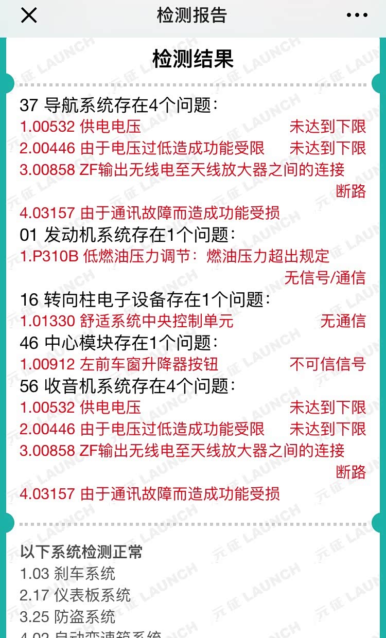 这是车辆OBD诊断报告里面存储故障代码