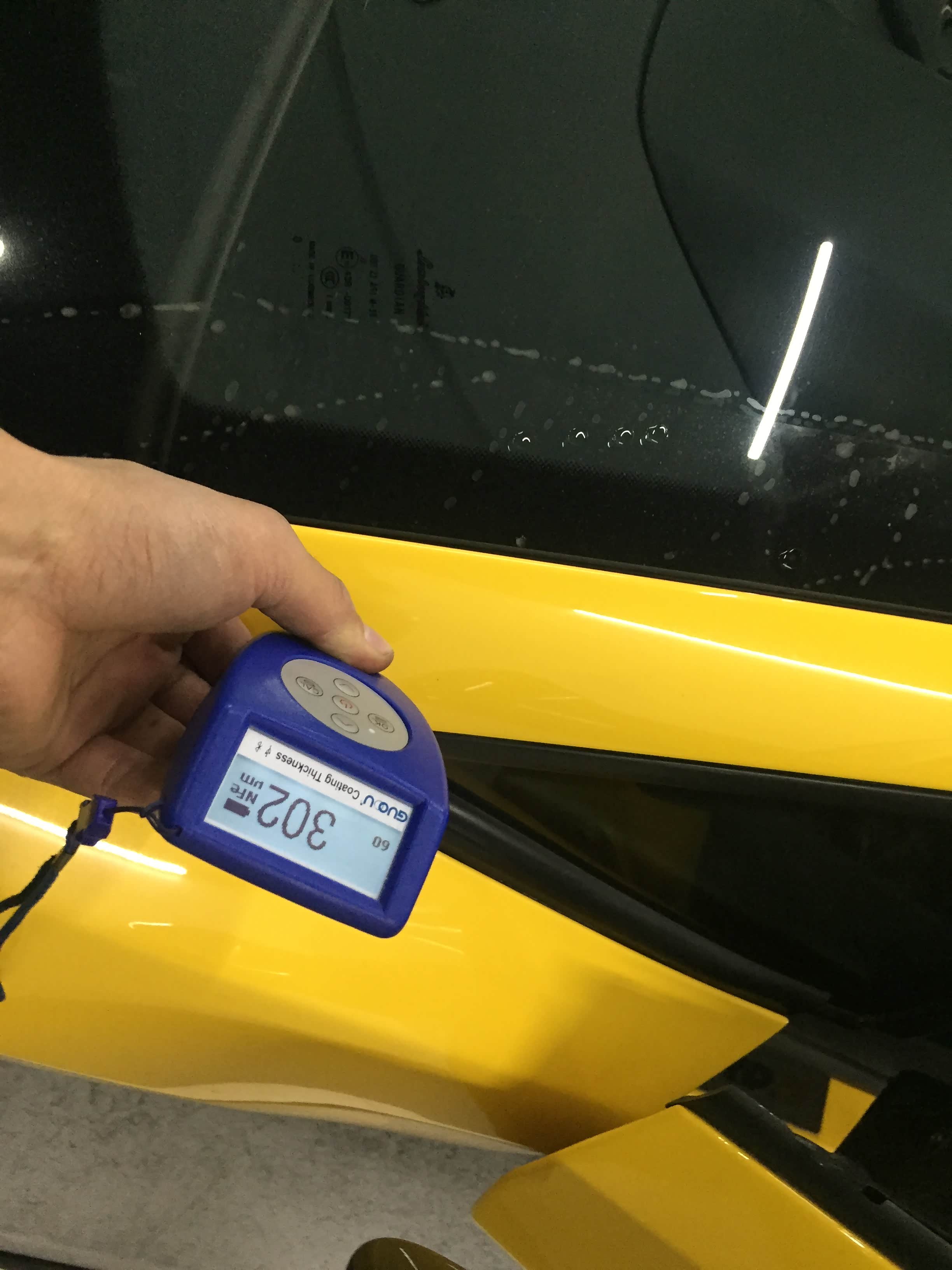 车顶贴膜漆面大部分数值在290左右,相对来说比较均匀,以我们经验推断喷漆的可能性较低。