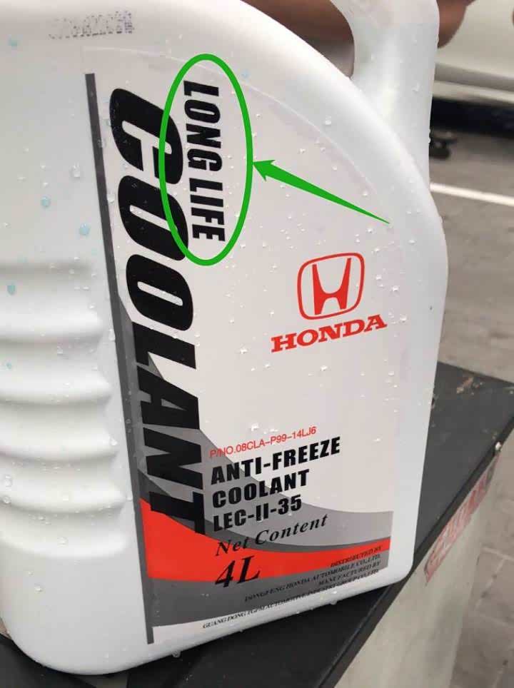 本田原厂的冷却液上就有LONGLIFE长效字眼。