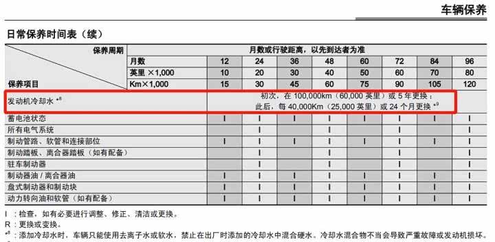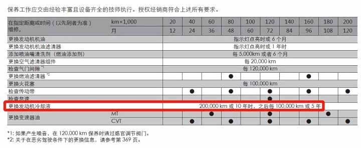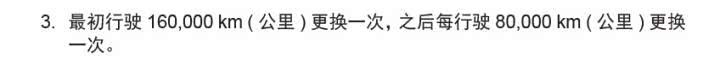 本田更厚道些,20万公里/10年首次更换,之后每10万公里/5年更换。