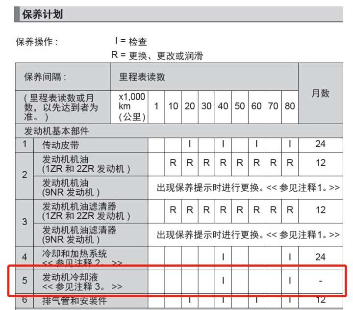 丰田卡罗拉的说明书,每4万公里检查,16万公里首次更换,之后每8万公里更换。