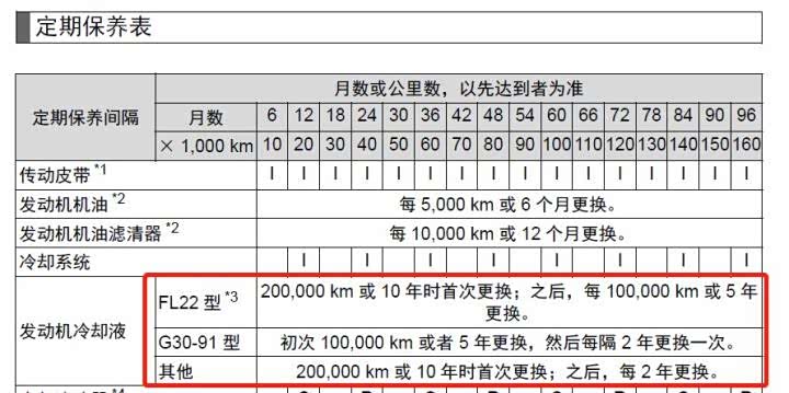 日系的马自达,使用原厂FL22支持20万公里/10年首次更换,之后每10万公里/5年更换。使用G30-91冷却液支持10万公里/5年首次更换,之后每2年更换。