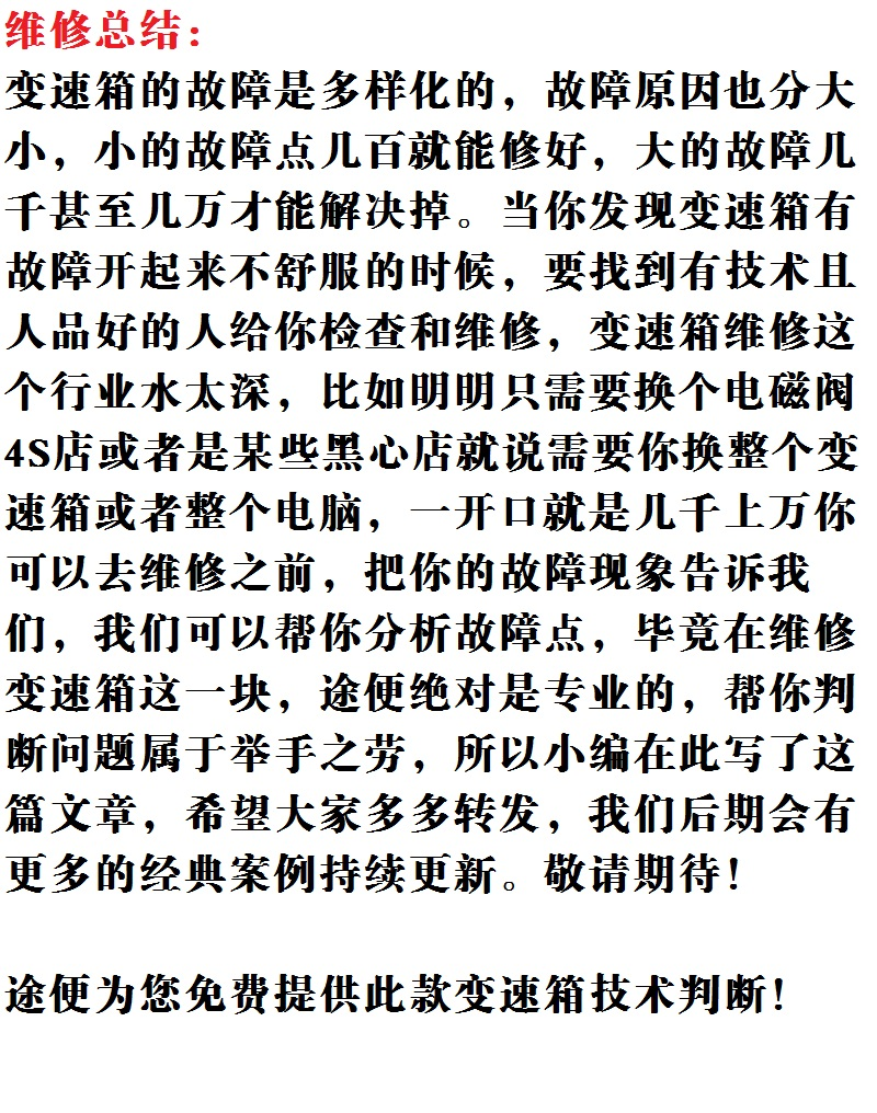 途便汽车自动变速箱,平时主要讲解各种变速箱的一些常见问题分析,维修的过程详细流程,以及对一些通病问题的防范等等。