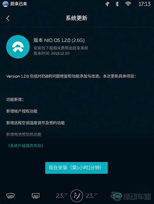 而在蔚来提供的系统更新提示图片显示,需要点击“现在安装”按钮才会进行更新,也的确提示了更新所需要时间,但如果发生误触,也会导致车辆进行更新。为此蔚来表示了道歉,并承诺会优化升级确认及提醒逻辑。