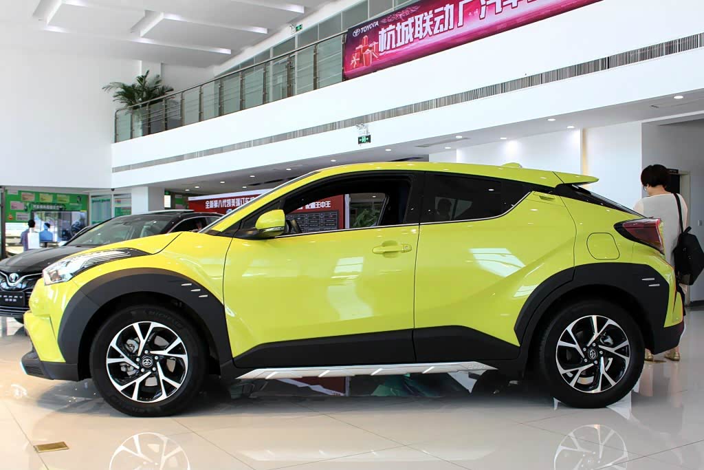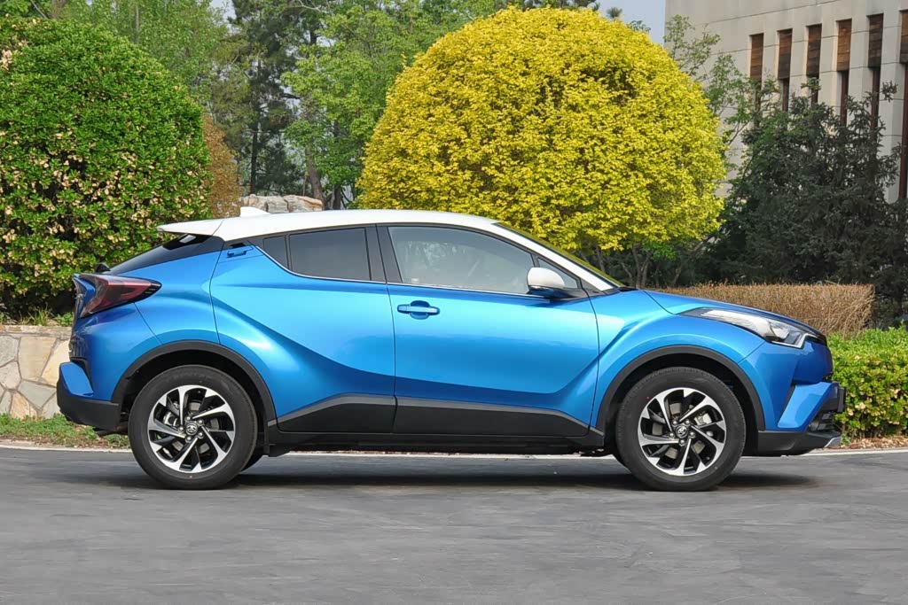 两款车型的侧面仍然是相同的造型设计,悬浮式车型带有一定的溜背效果,并在车尾处产生了一个收紧的效果,使车辆具有一种前冲的姿态。C-HR和奕泽都具有纯色和双色两种车身涂装,但是与主打白色车顶的奕泽相比,主打黑色车顶的C-HR更具有运动性。
